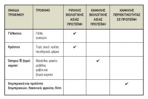 Ως πρωτεΐνες υψηλής βιολογικής αξίας ορίζονται αυτές που παρέχουν στον ανθρώπινο οργανισμό όλα τα απαραίτητα αμινοξέα που χρειάζεται για να συνθέσει τις δικές του πρωτεΐνες (μύες, όργανα κλπ.). Συνεπώς για τη διατήρηση των πρωτεϊνών του σώματος θα πρέπει να καταναλώνονται τρόφιμα που ανήκουν στις ομάδες των γαλακτοκομικών και του κρέατος με μεγαλύτερη συχνότητα.