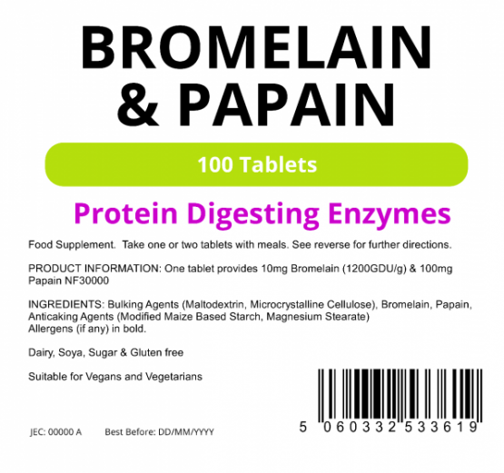 Το κάθε δισκίο περιέχει :10 mg και 100 mg βρωμελίνης και παπαΐνης αντίστοιχα, σε ένα βολικό δισκίο ταχείας κατάποσης.